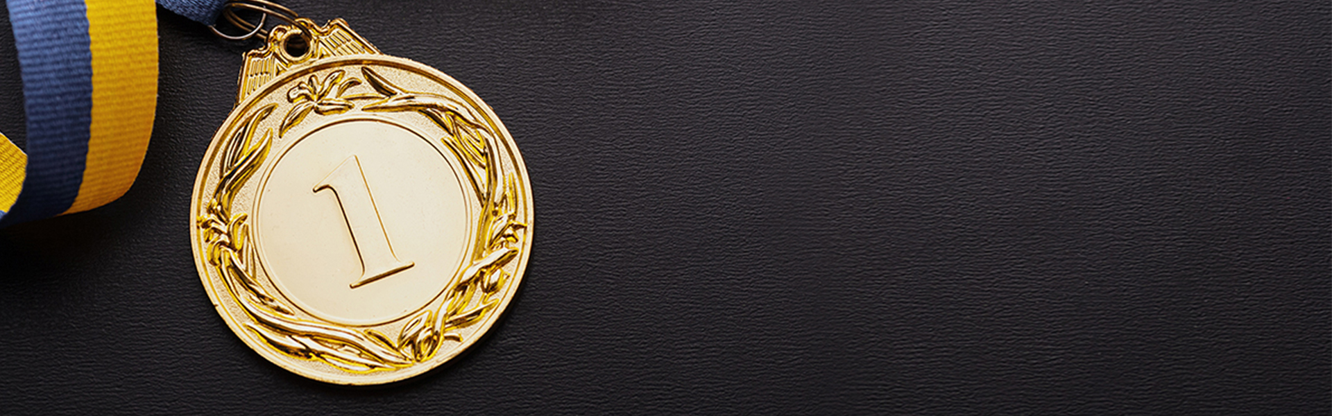 Champion or first placed winner gold medallion Published June 9, 2020 at 1920 × 600 in Champion or first placed winner gold medallion Champion or first placed winner gold medallion with twirled gold and blue ribbon over a dark grey background with copy space viewed from overhead ← Previous Next →